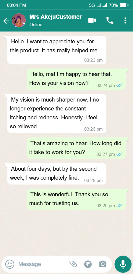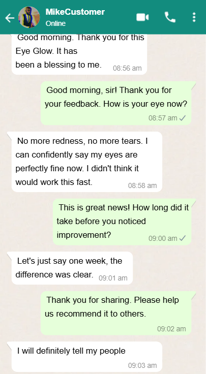 Use it for 30 days. If you don’t see a dramatic improvement in your eye health, I’ll refund every kobo you paid.