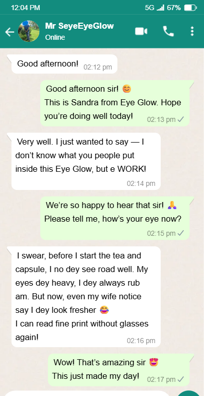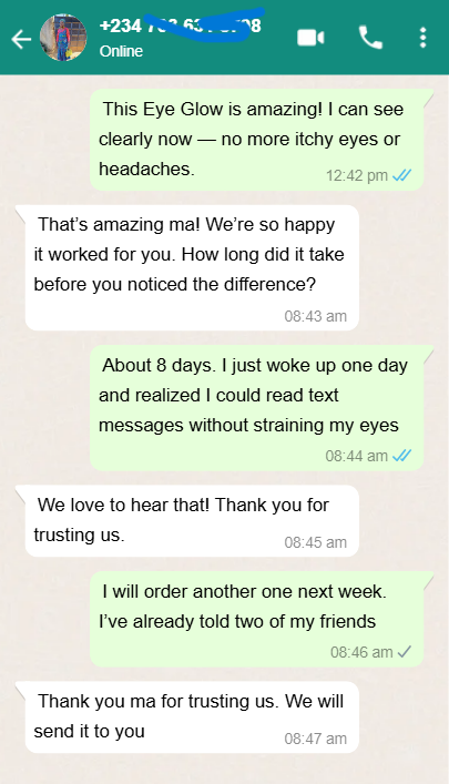 Use it for 30 days. If you don’t see a dramatic improvement in your eye health, I’ll refund every kobo you paid.